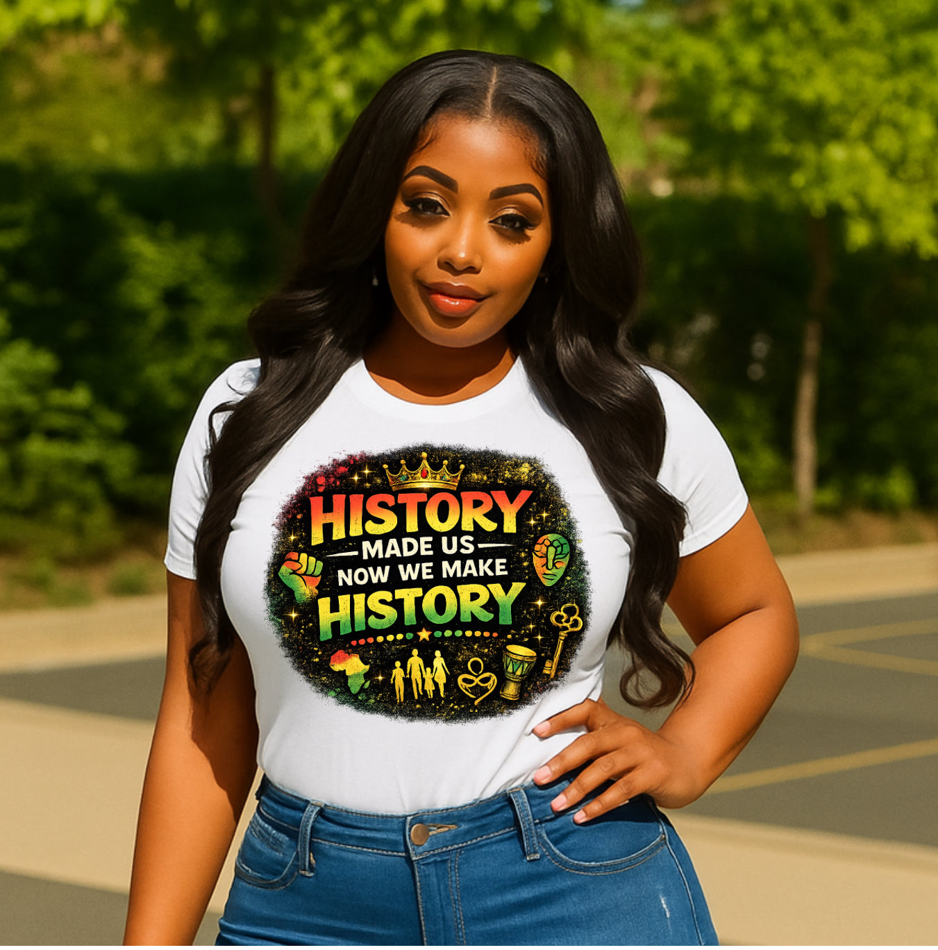 History made us. Now we make history tshirt. If there’s another color you’d like please add it in the notes in the checkout process.