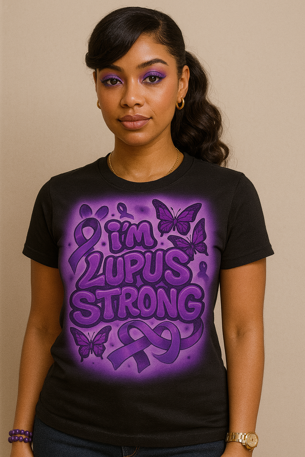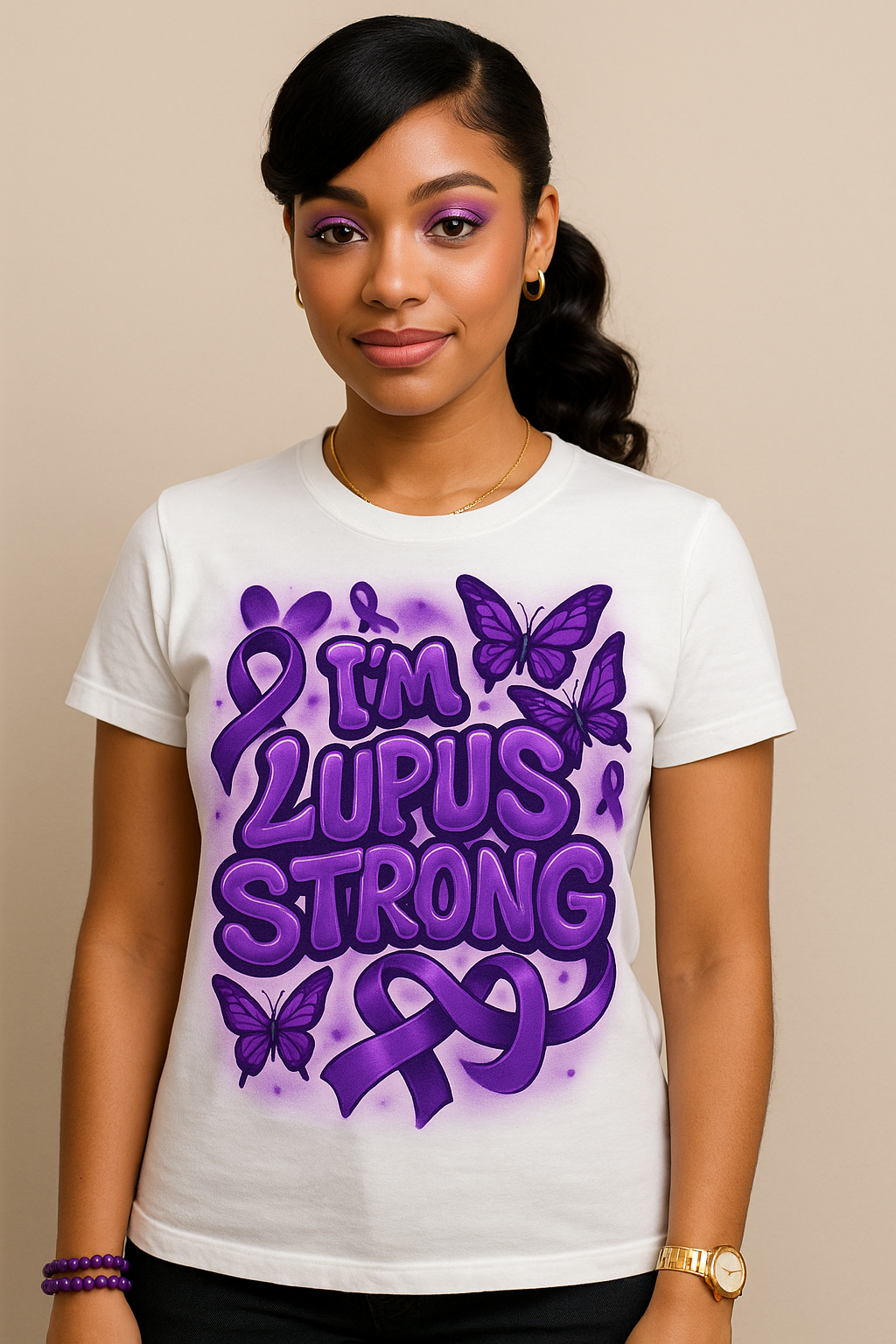 Custom designed I Am Lupus Strong tshirt. If there’s another you’d like please add it in the notes in the checkout process.