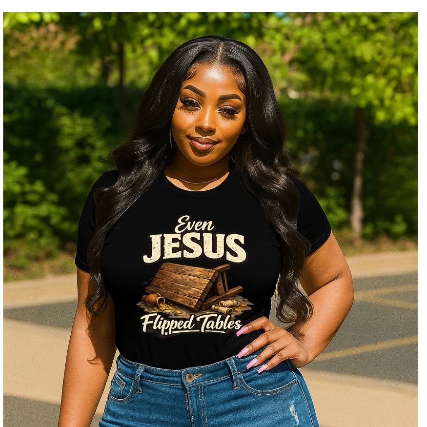 Even Jesus Flipped Tables Tshirt. If there’s another color you’d like please add it in the notes in the checkout process.